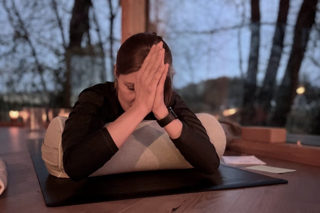 Eine sanfte Yin-Praxis wirkt sich in vielerlei Hinsicht positiv auf unseren Körper aus. Bewusste Atemzüge ermöglichen es uns, tief in die Haltungen einzutauchen. Dabei entspannen sich unsere Muskeln, dehnen sich unsere Sehnen und unsere Faszien werden geglättet. Gleichzeitig wird unser Parasympathikus stimuliert, wodurch sich Verspannungen leichter lösen. Ganz nebenbei findet auch unser Geist zur Ruhe.